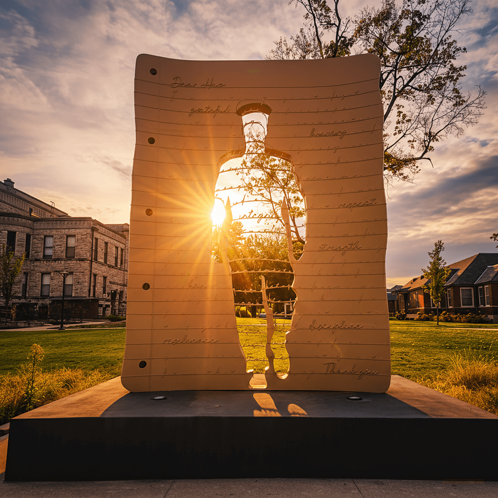 | Artwork Title: DEAR HERO… Medium: Steel & Aluminum Dimensions: 20’ x 14’ X 4’ Location: Quincy, IL Year Completed: 2025 Quincy Veterans Home | Art-in-Architecture | Capital Development Board |